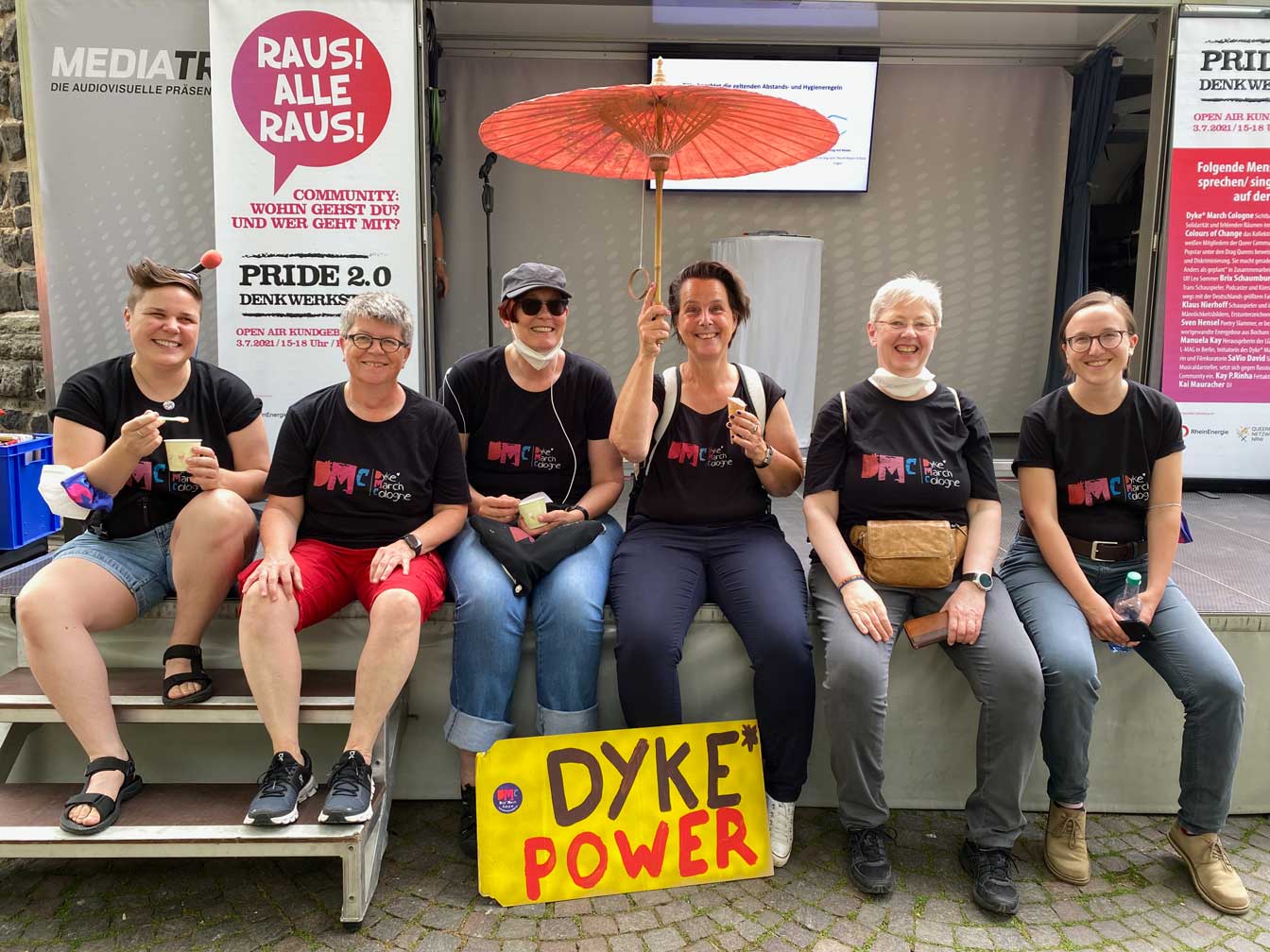 Der Dyke* March Cologne ist Teil des „AK Sichtbarkeit und Vernetzung von Lesben und queeren FLINTA in Köln“, in dem sich queere Mitglieder der Stadt AG und andere politisch engagierten Gruppen etwa einmal monatlich zum Austausch treffen und neue Ideen und Strategien zur Durchsetzung unserer Interessen entwickeln.